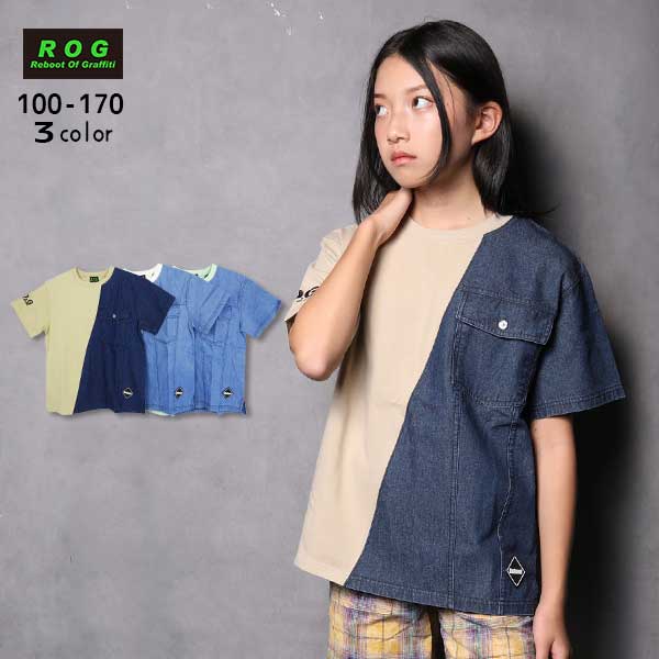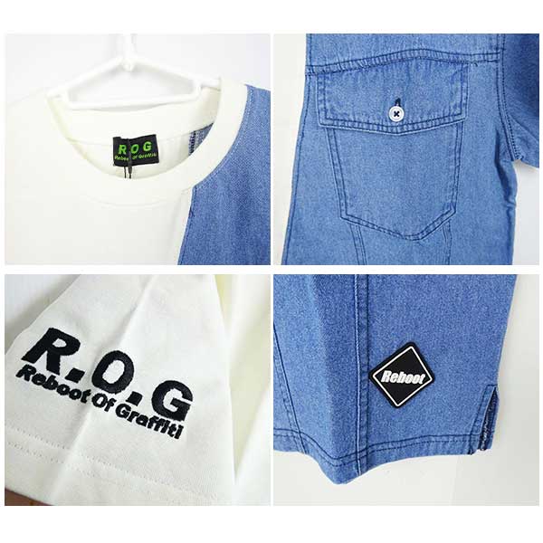 • 【2026夏物新作】ROG(アールオージー)デニム切替ビック半袖Tシャツ【メール便送料無料】